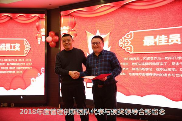 随后,公司领导颁发2018年度优秀员工奖、优秀团队奖暨管理创新团队奖,现场气氛热烈,大家以热烈的掌声向获奖者致以了最美好的祝愿。